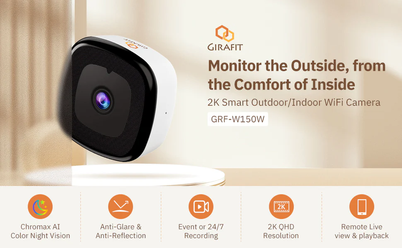 2.45GHz 5MP AI Security Camera with 2K Window 247 Recording Local cloud Storage Built-in Mic & Two-Way Audio